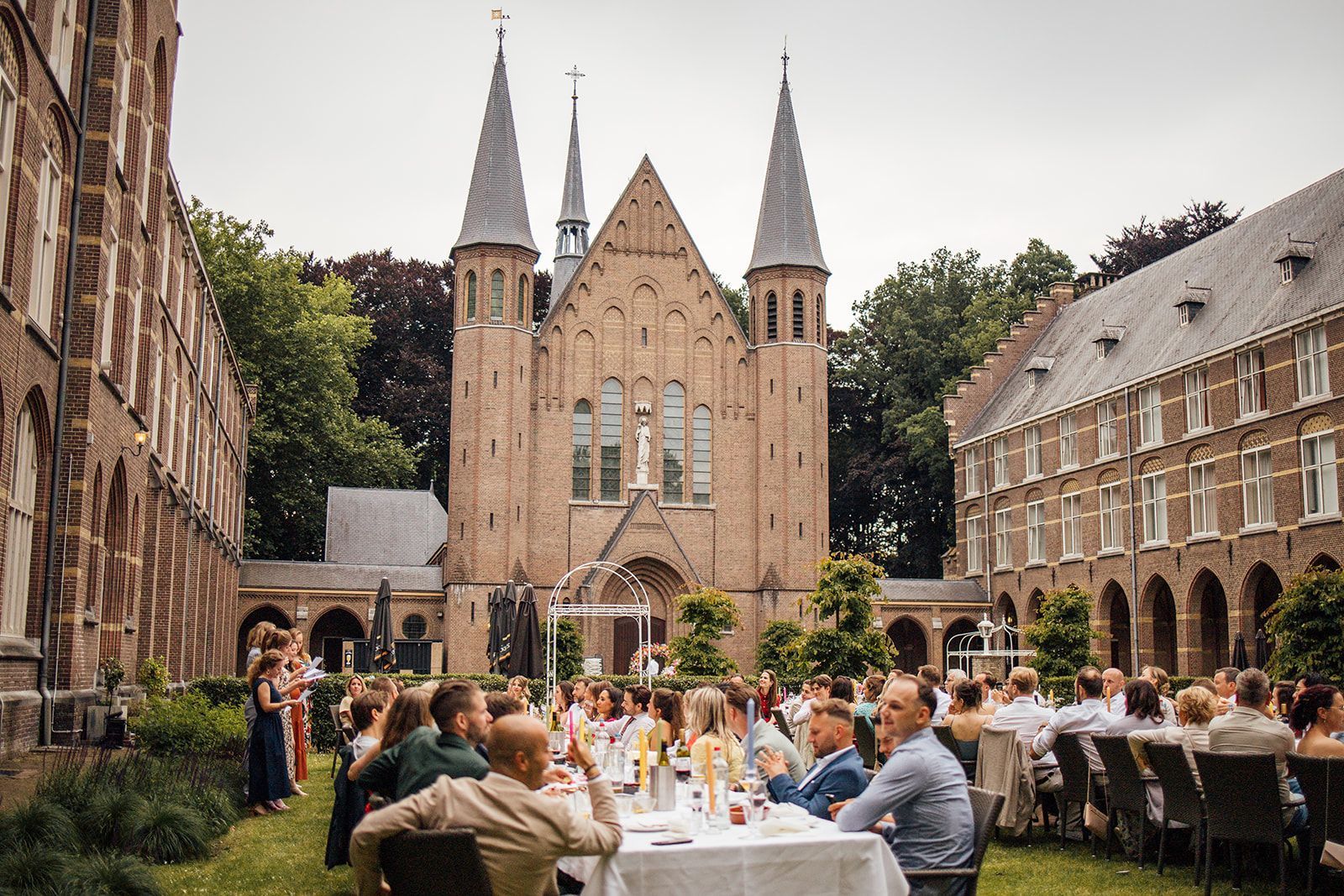Onze binnentuin vormt het perfecte decor voor een ontspannen en sfeervol samenzijn. We heffen samen het glas op jullie als bruidspaar, waarna jullie gasten de hele dag worden verwend met heerlijke hapjes en drankjes – allemaal inbegrepen.